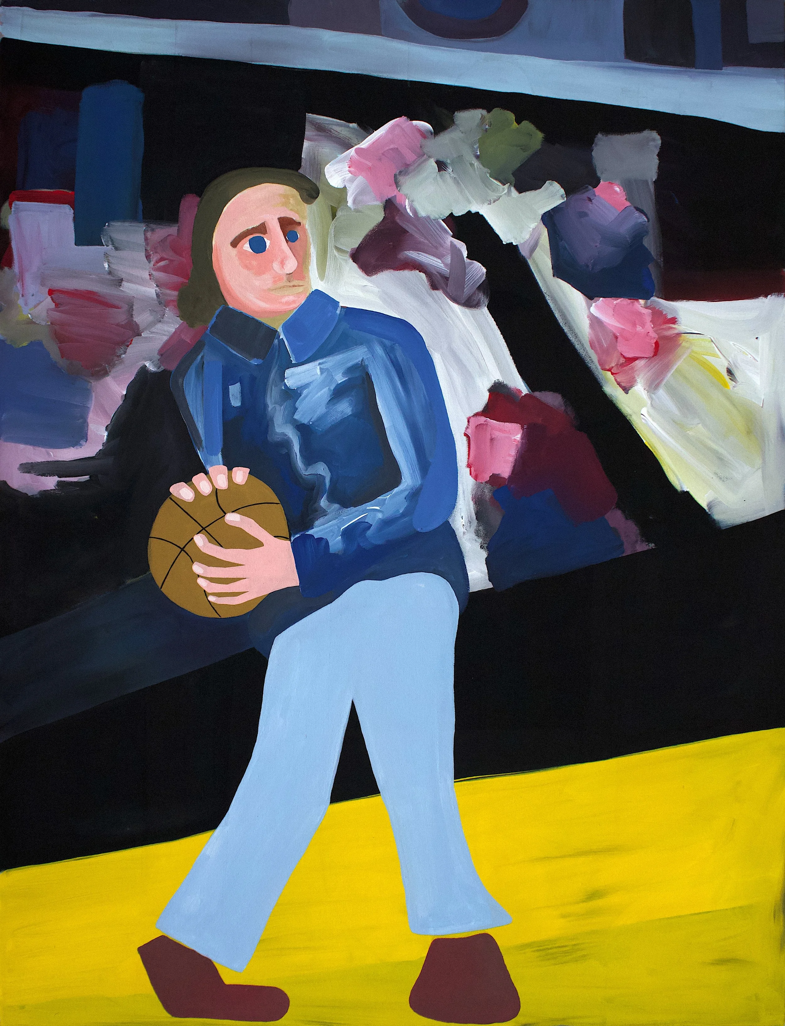 “DOINK”, said the hoop or the ball?, acrylic on canvas, 40 x 30 inches, 2023